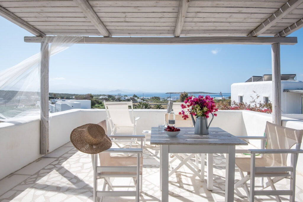 Our Paros villas are located in Small Santa Maria. This is a charming location just few minutes away on foot, from two quiet sandy beaches. The noisy crowds will not bother your here. The famous Santa Maria beach is just 10 minutes away and the picturesque Naoussa village is easy accessible by car or bike.